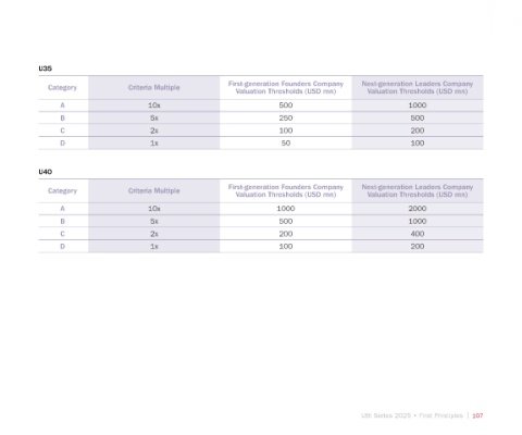 Valuation Thresholds (USD mn) Valuation Thresholds (USD mn)