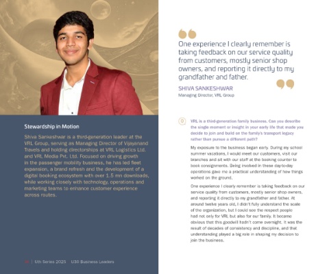 Travels and holding directorships at VRL Logistics Ltd. My exposure to the business began early. During my school