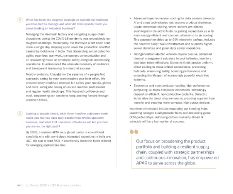 What has been the toughest strategic or operational challenge • Advanced liquid immersion cooling for data centers driven by