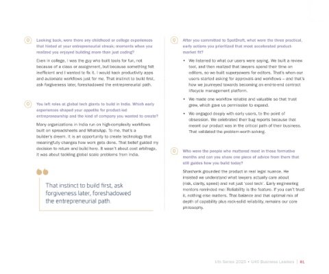 Looking back, were there any childhood or college experiences After you committed to SpotDraft, what were the three practical,