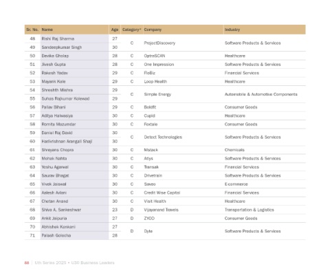Sr. No. Name Age Category* Company Industry
