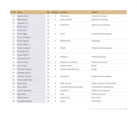 Sr. No. Name Age Category* Company Industry