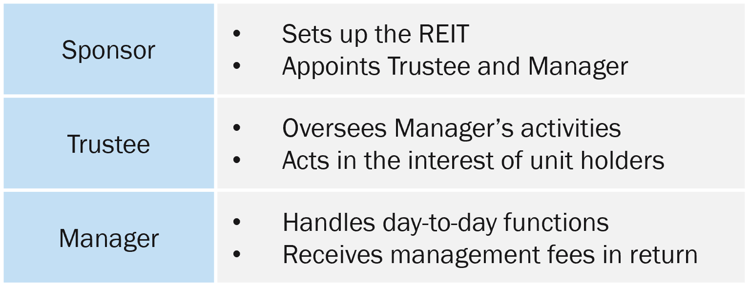 REITs are registered as a business trust with three parties managing it: